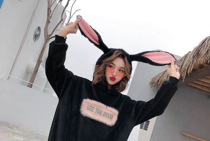 ダサかわウサギの耳フード付きベルベットオルチャンパーカージャケット