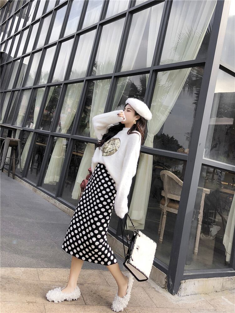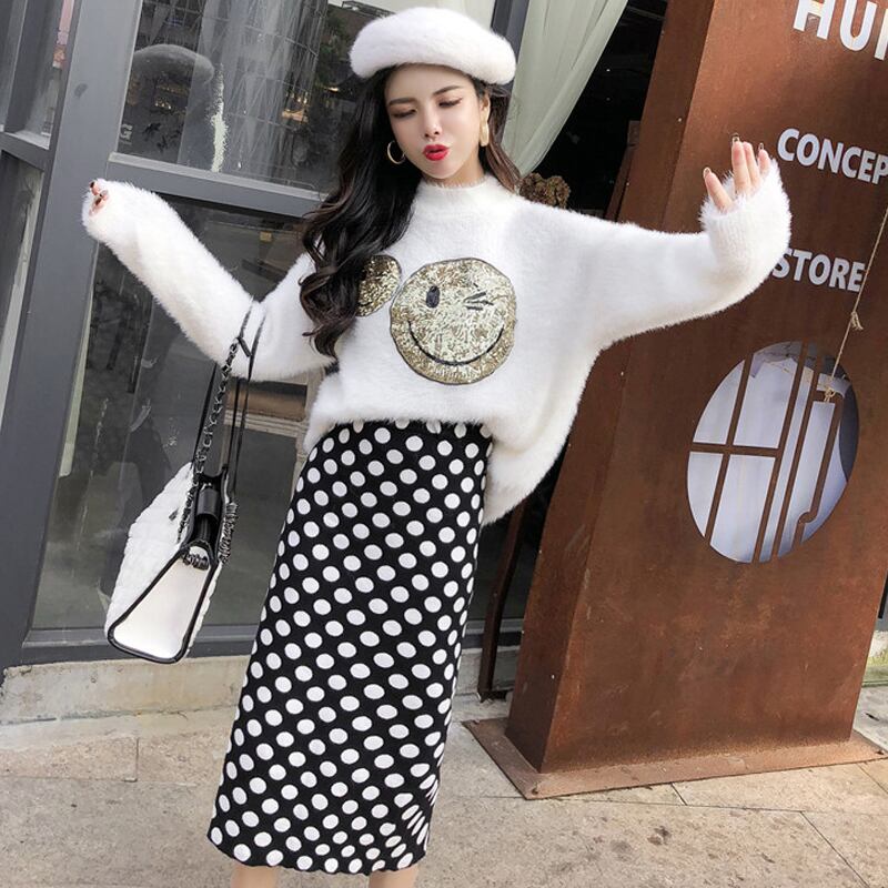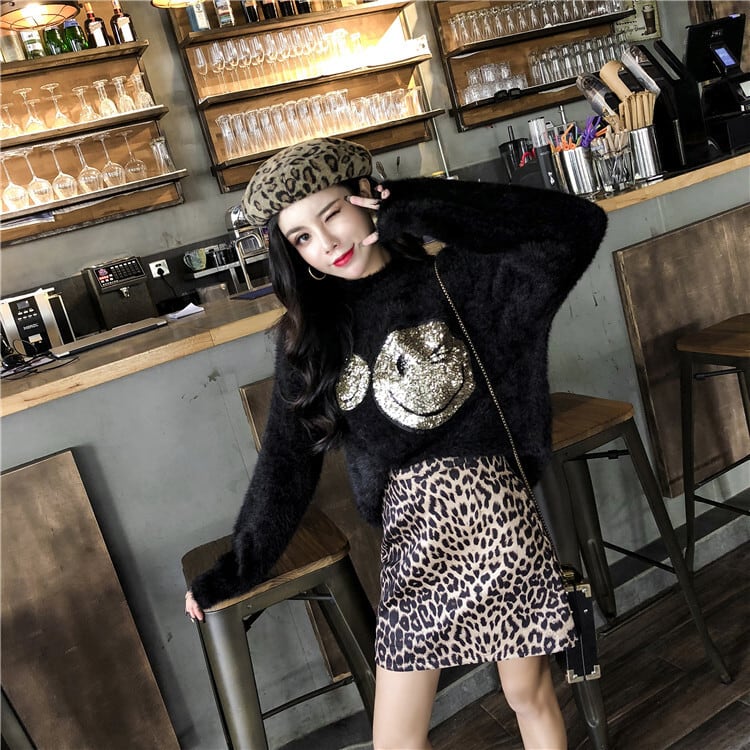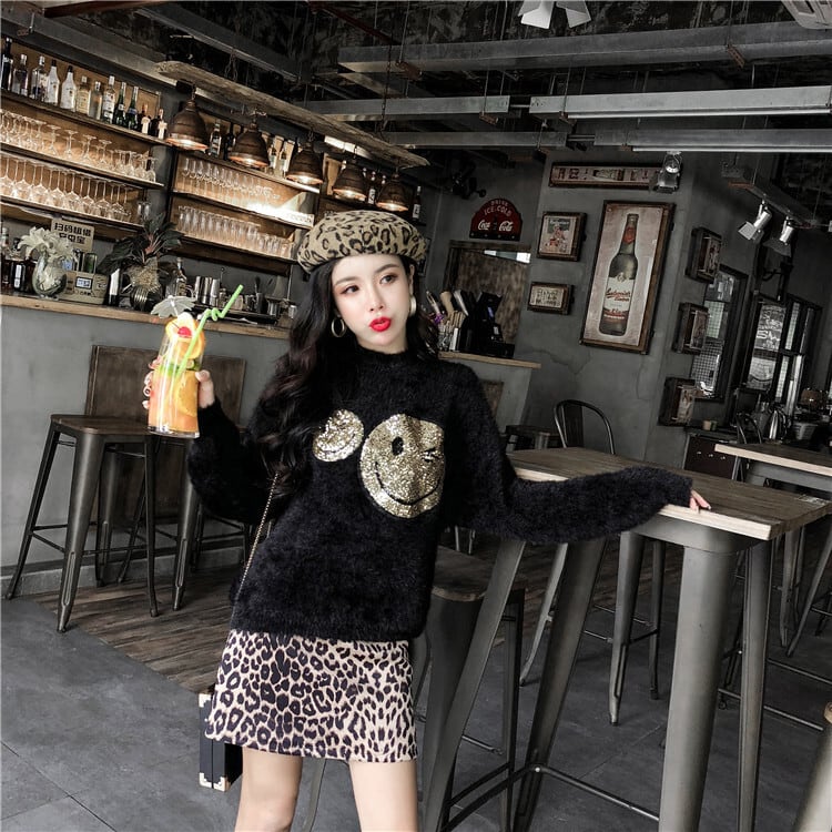 2カラー ポップストリート スマイリースパンコール ニットもこふわセーター